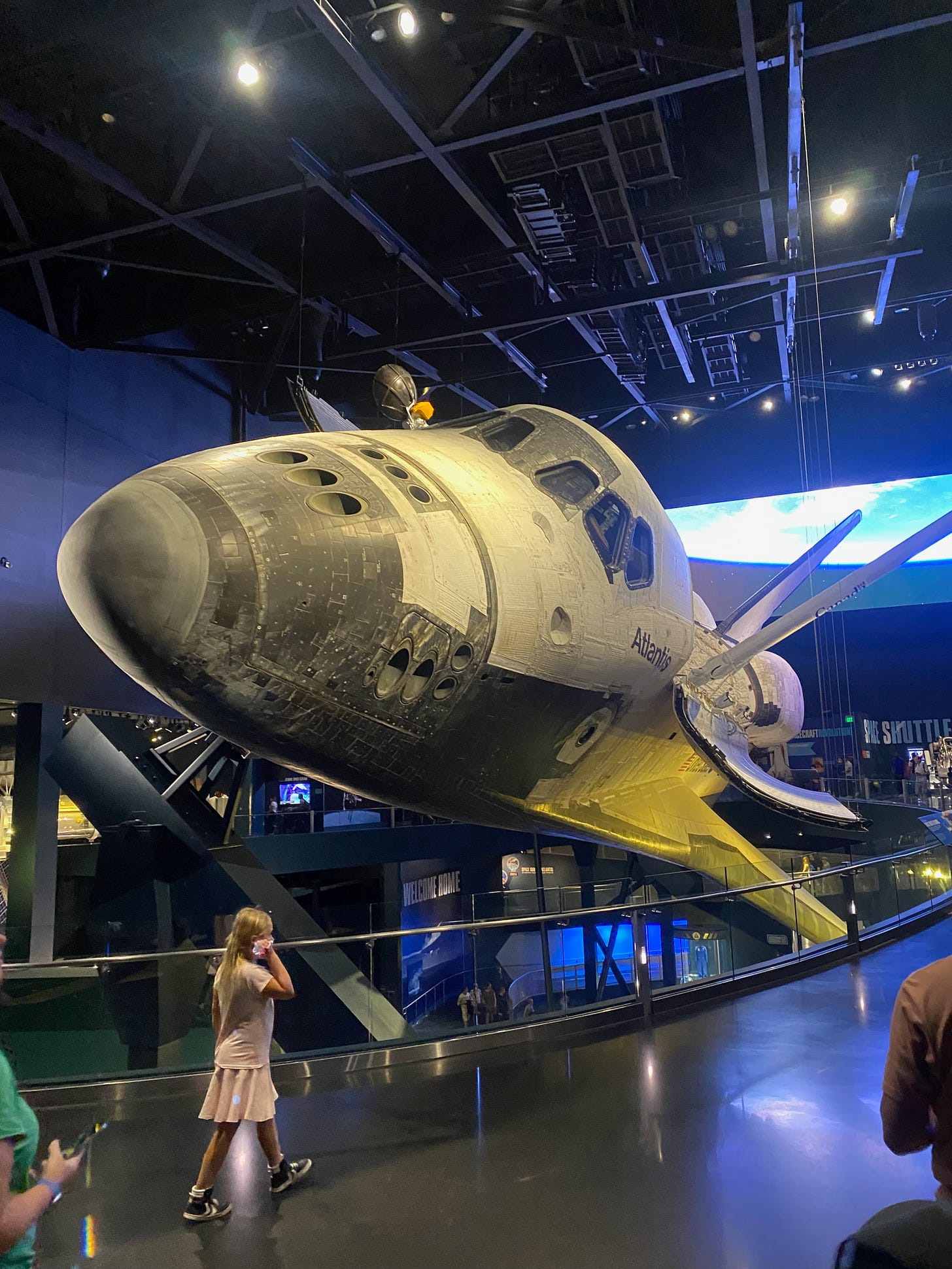 I kept reminding her that this was a place of huge historical significance, not just for Americans but for the whole world. Thousands of space missions have launched from this very spot. It’s the home of the historic Atlantis, a first of its kind space shuttle whose ginormous carcass hangs high over us in one of the massive hangars. It’s not a theme park but a museum. A really good museum. But no. The ‘rides’ were not slick enough. The simulators not realistic enough. Armstrong and co would be turning in their graves. At least Em didn’t pretend it was her birthday.