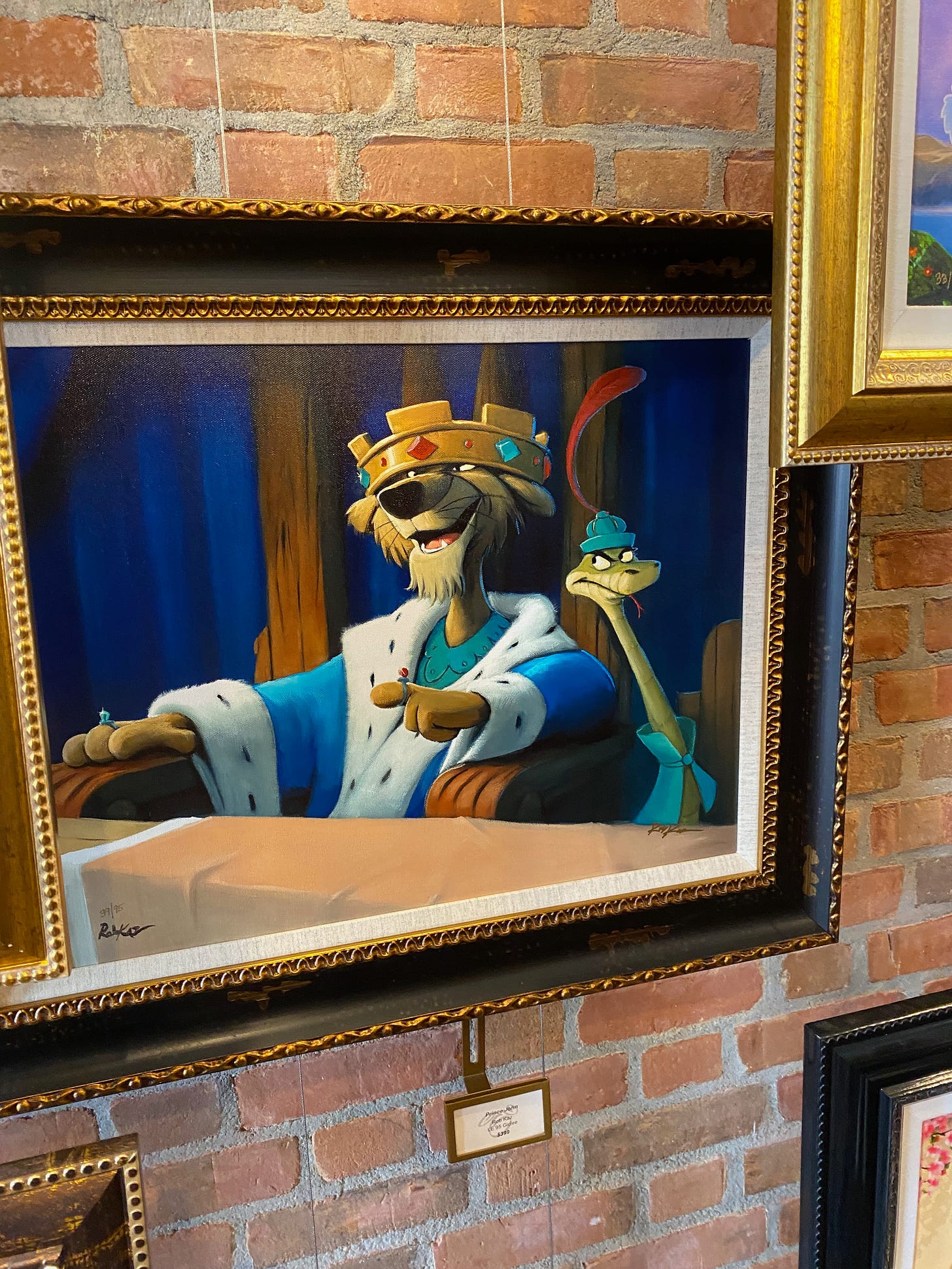 Em and I would have had fun drinking our way around the world here like many others (another time, perhaps). Instead, we shopped for a bit (stumbling across a $400 oil painting of Prince John and Sir Hiss) before making our way through Japan, Germany and France, and on to the UK.